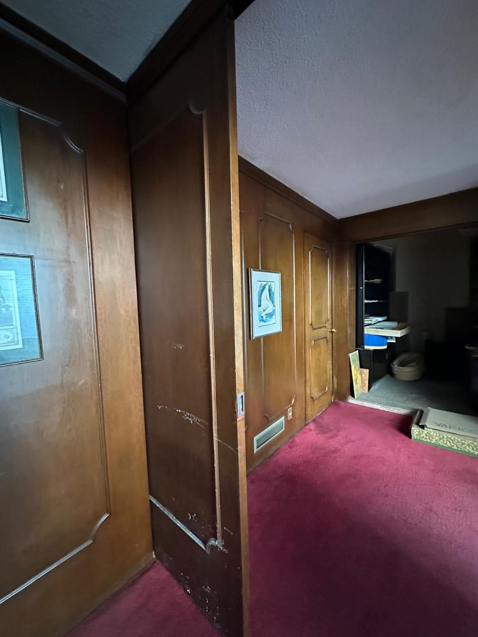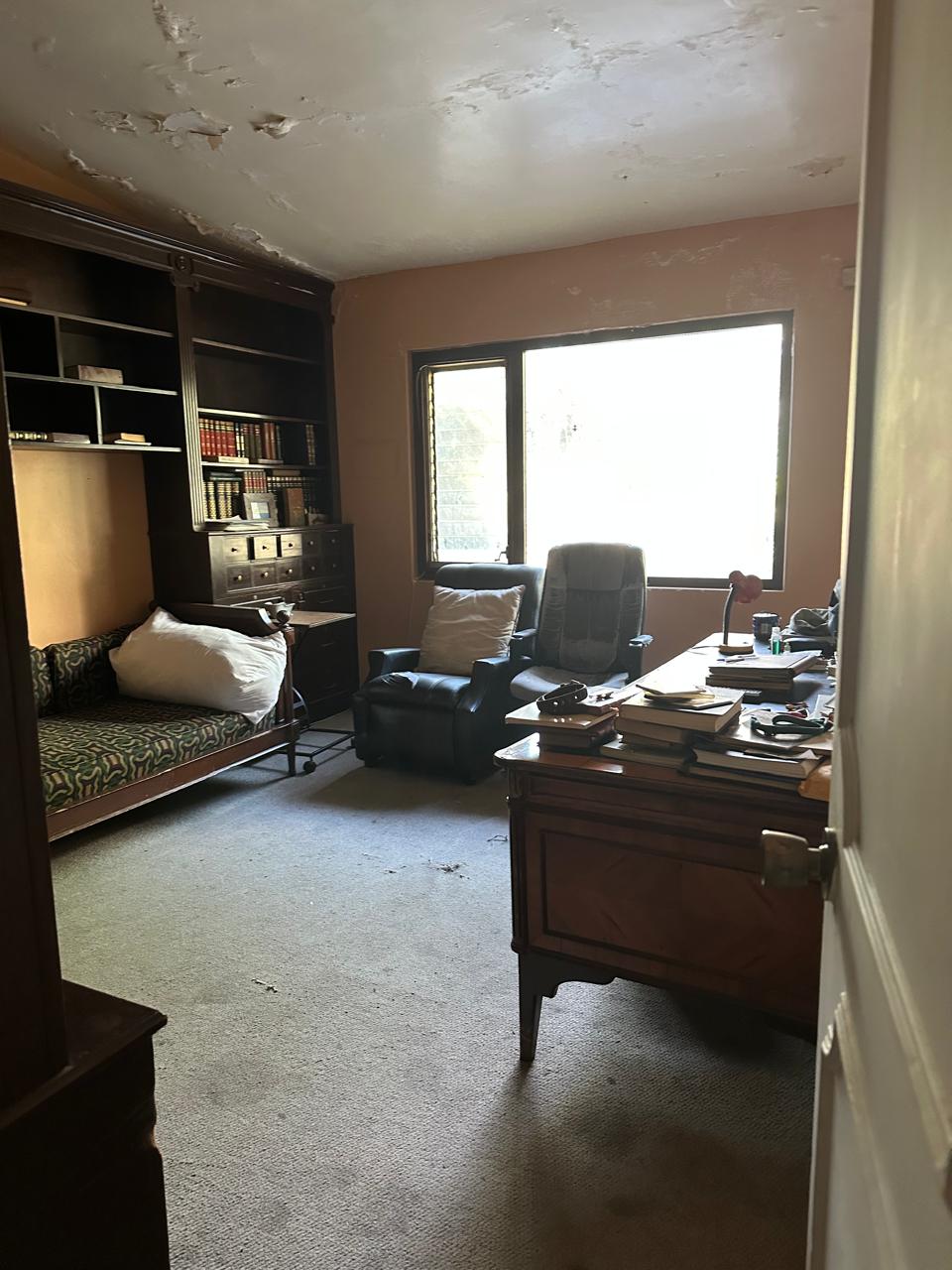 Hacías el lado izquierdo de la entrada tenemos una oficina y la puerta que divida el área social, recámara con vestidor y baño propio, además de dos cuartos que comparten baño, estas dos con ventanales hacia el jardín y alberca; La recámara principal es muy amplia, tiene una salita privada, vestidor para hombre, vestidor para mujer y un baño que los conecta. En la parte exterior hay una bodega de 27 m².