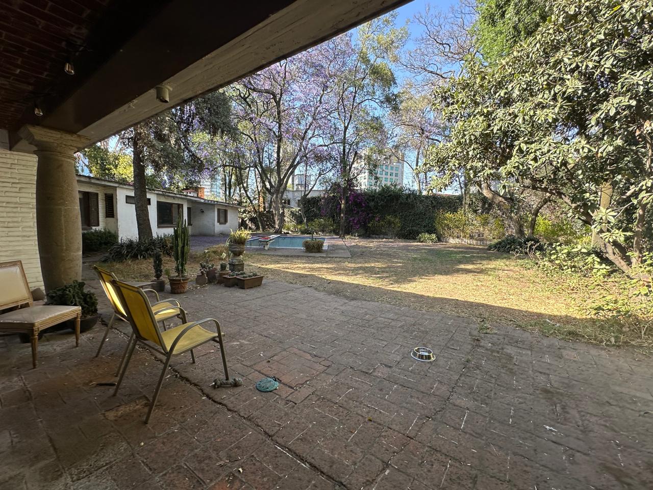 Casa en calle cerrada y vigilancia 24/7 en una exclusiva glorieta está la casa de una sola planta más de 60 años en la calle de Colorines, en el corazón del Pedregal, ideal para remodelar o incluso subdividir en varias casas.