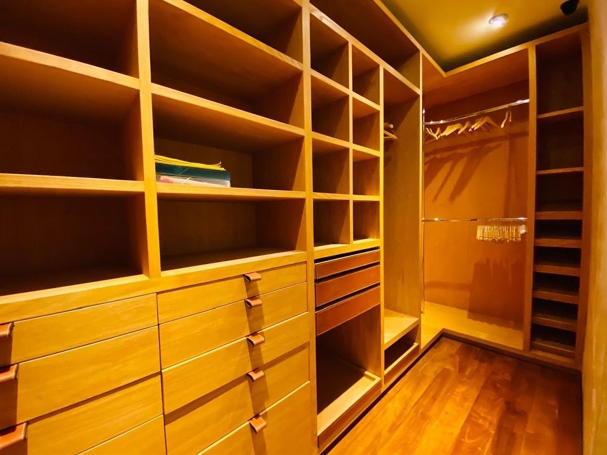 Dos recámaras con baño y vestidor, la principal máster suite con tina de hidromasaje ,doble tarja.