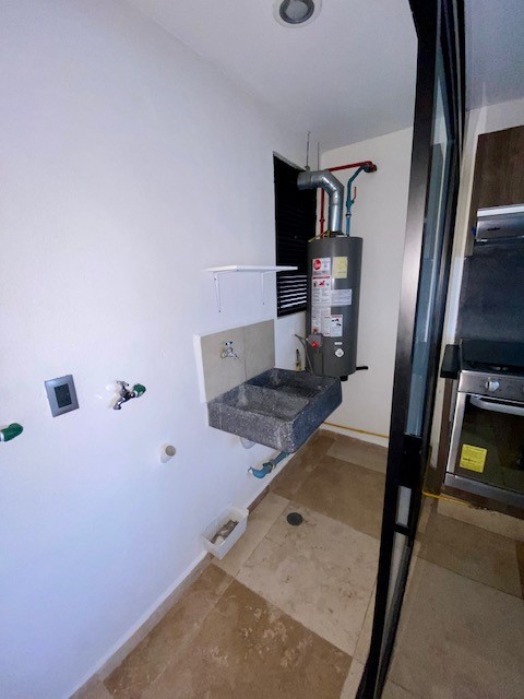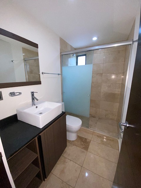 Increíble depto. en renta, excelente ubicación con acabados de lujo, piso de mármol, persianas en todos las ventanas y blackout en recámaras , cuenta con 2 recámaras la principal con baño privado y la secundaria tiene una adaptación de litera doble con closets adicionales y escritorio especial para niños pequeños(en caso de no quererlo se puede quitar), 2 baños completos , una estancia muy amplia, cocina cerrada con área de lavado integrada, balcón y una terraza muy agradable, 2 lugares de estacionamiento, 1 bodega, Roof Garden común, jaula de tendido, ubicado en 1er piso con elevador desde estacionamiento, vigilancia 24 horas y CCTV.