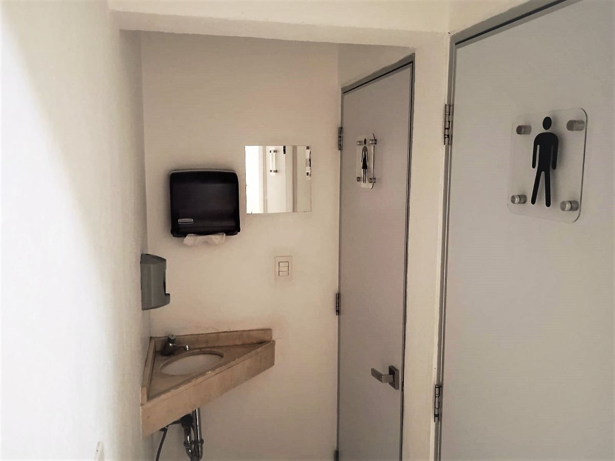 Actualmente no cuenta con baño privado pero se cuenta con las instalaciones para que se instale un 1/2 baño, en uno de los despachos hay 1/2 baños para H y M en el piso.