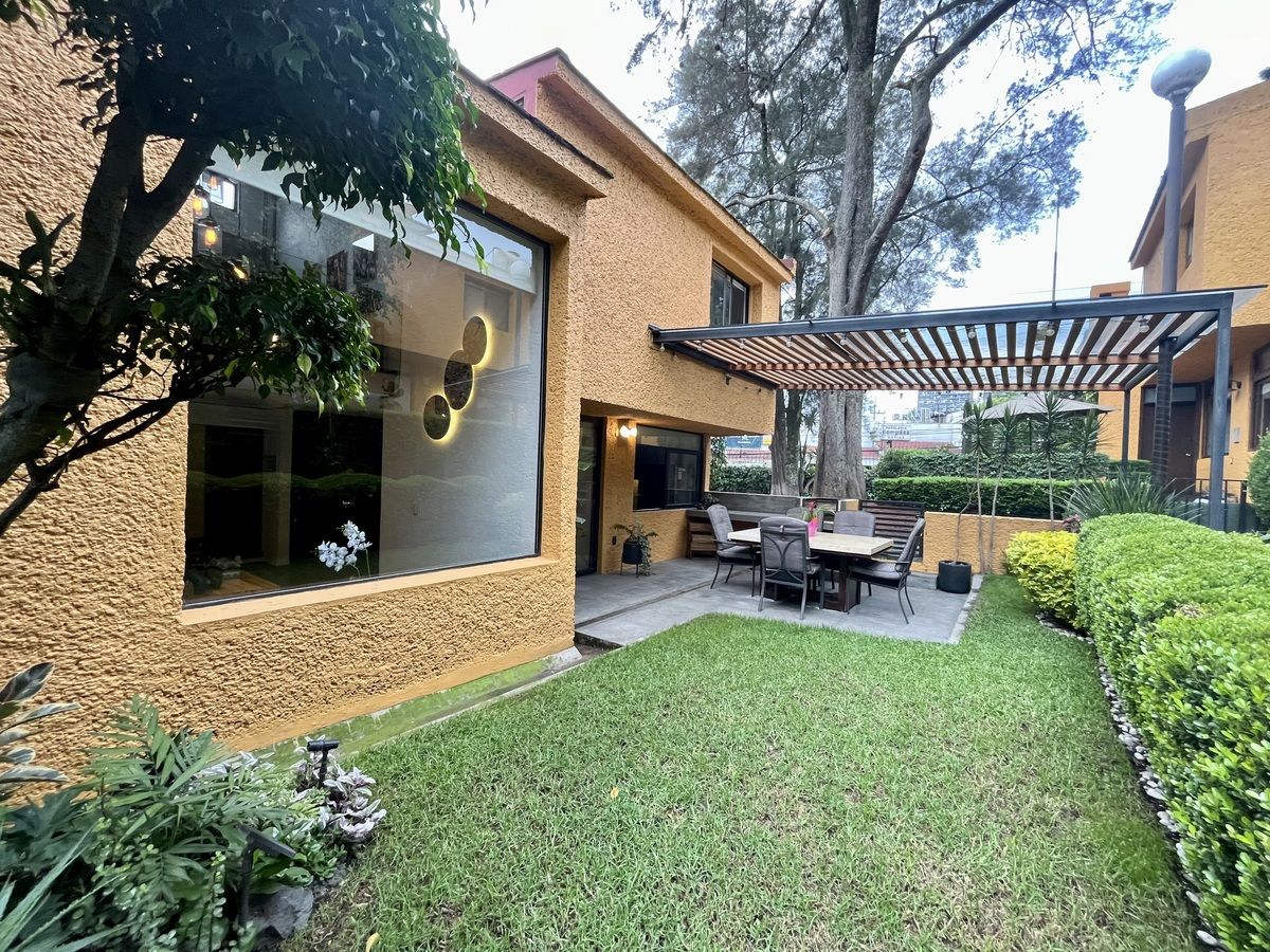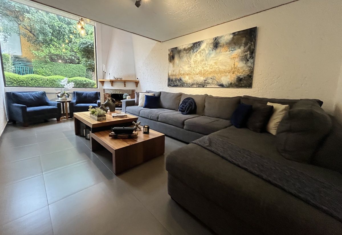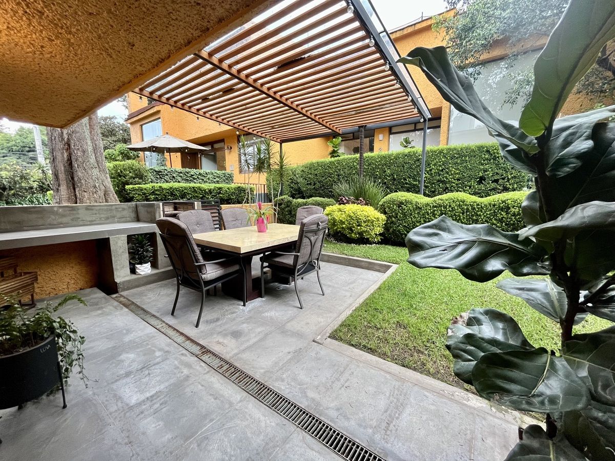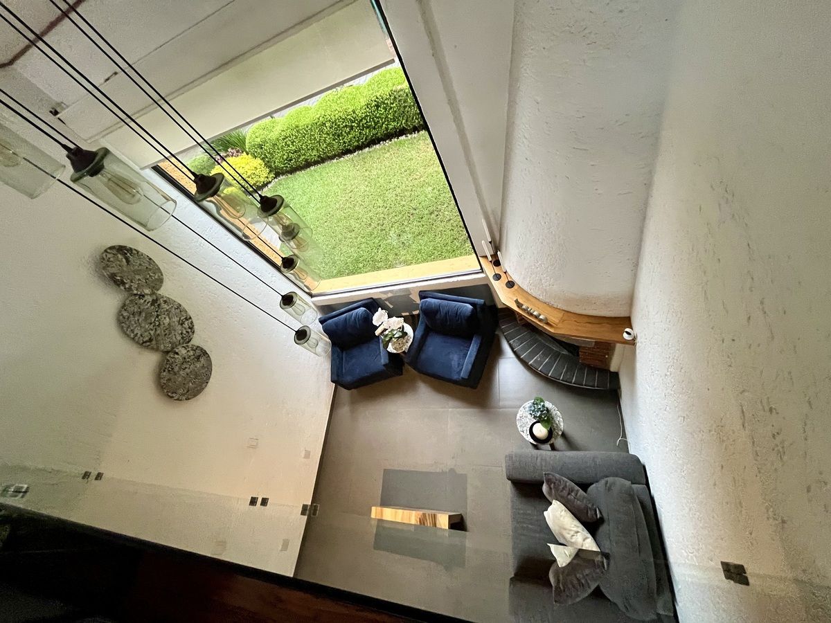 Cuenta con vestíbulo de entrada, amplia área social con doble altura , sala con chimenea, comedor con salida al jardín y terraza con pérgola.