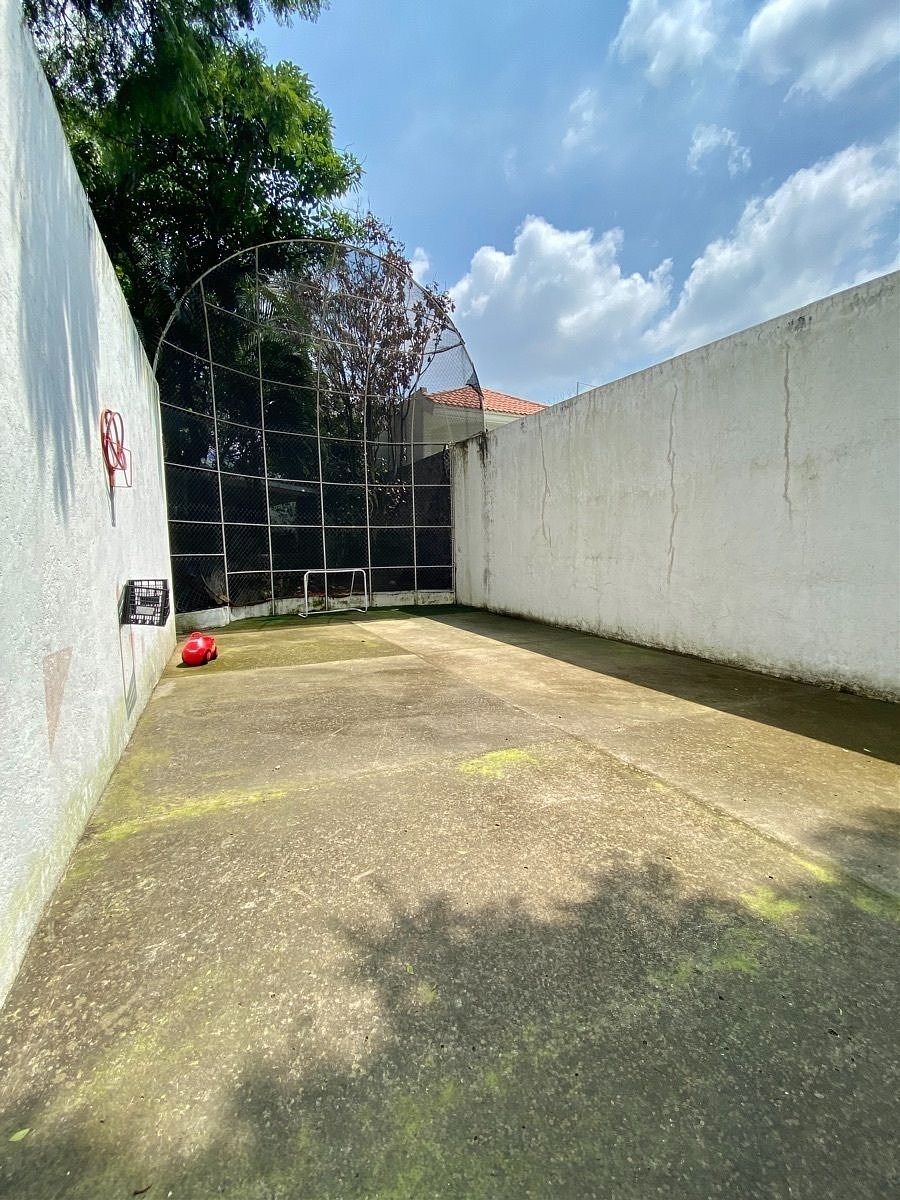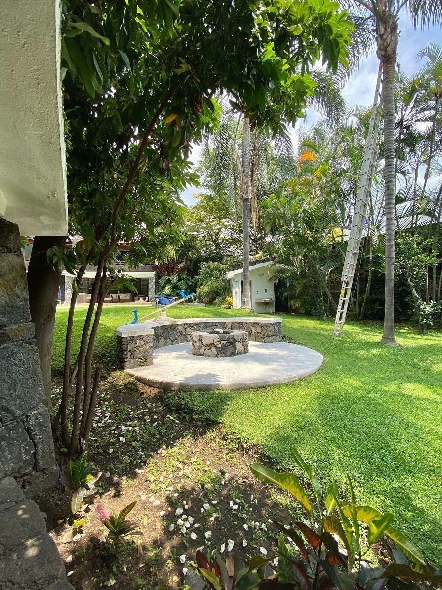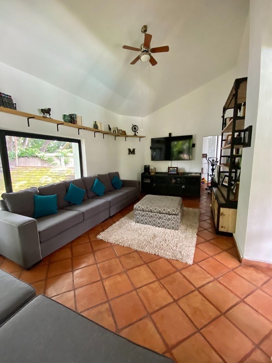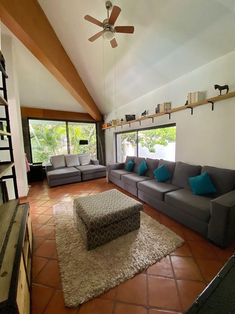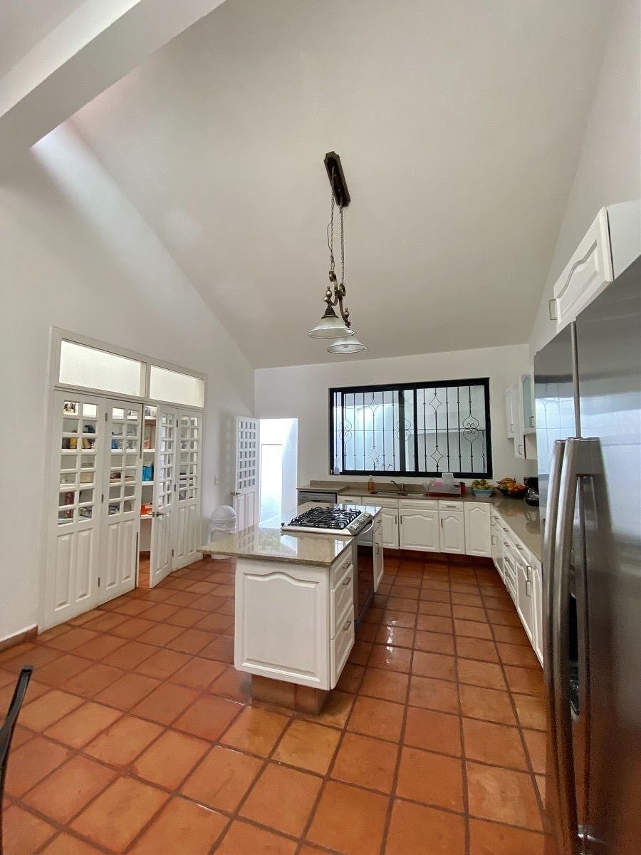 Amplia sala comedor con salida a un arbolado jardín con alberca y jacuzzi, terraza con asador, sala de descanso, sala de tv, cocina integral con isla y gran área de almacenaje, medio baño de visitas, cancha de frontón, 6 autos, 2 cuartos de servicio con baño y área de lavado.