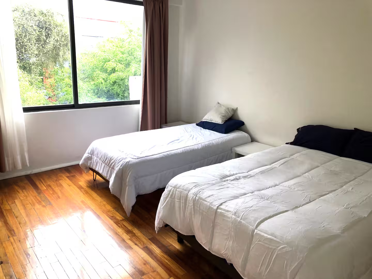 Este departamento se puede regresar a su estado original el cual estaba distribuido en 3 recámaras, 3 baños completos, cocina, estancia amplia, bodega y camaras de vigilancia.