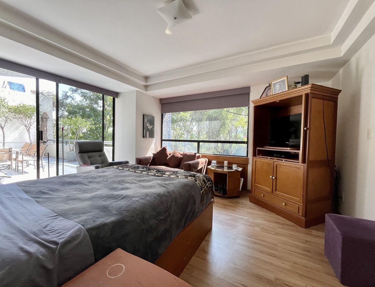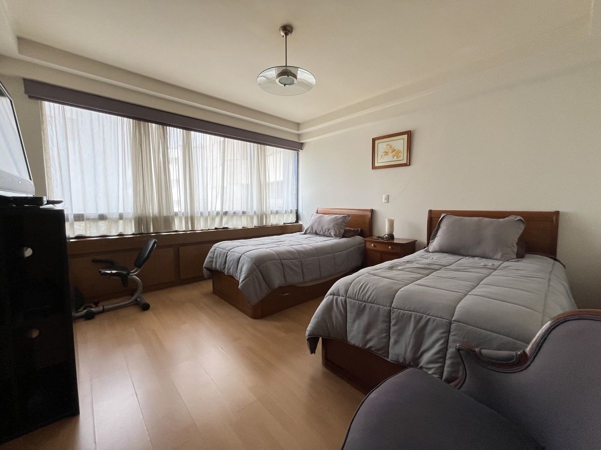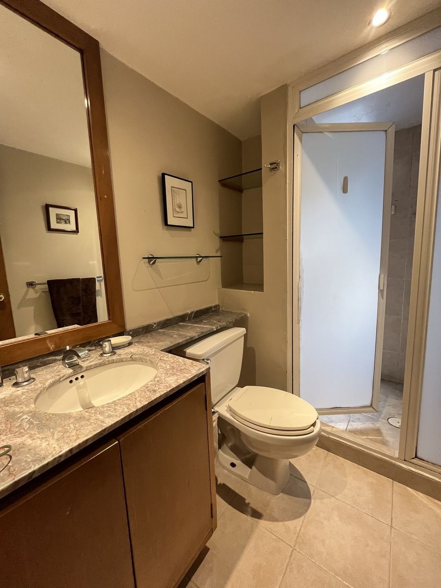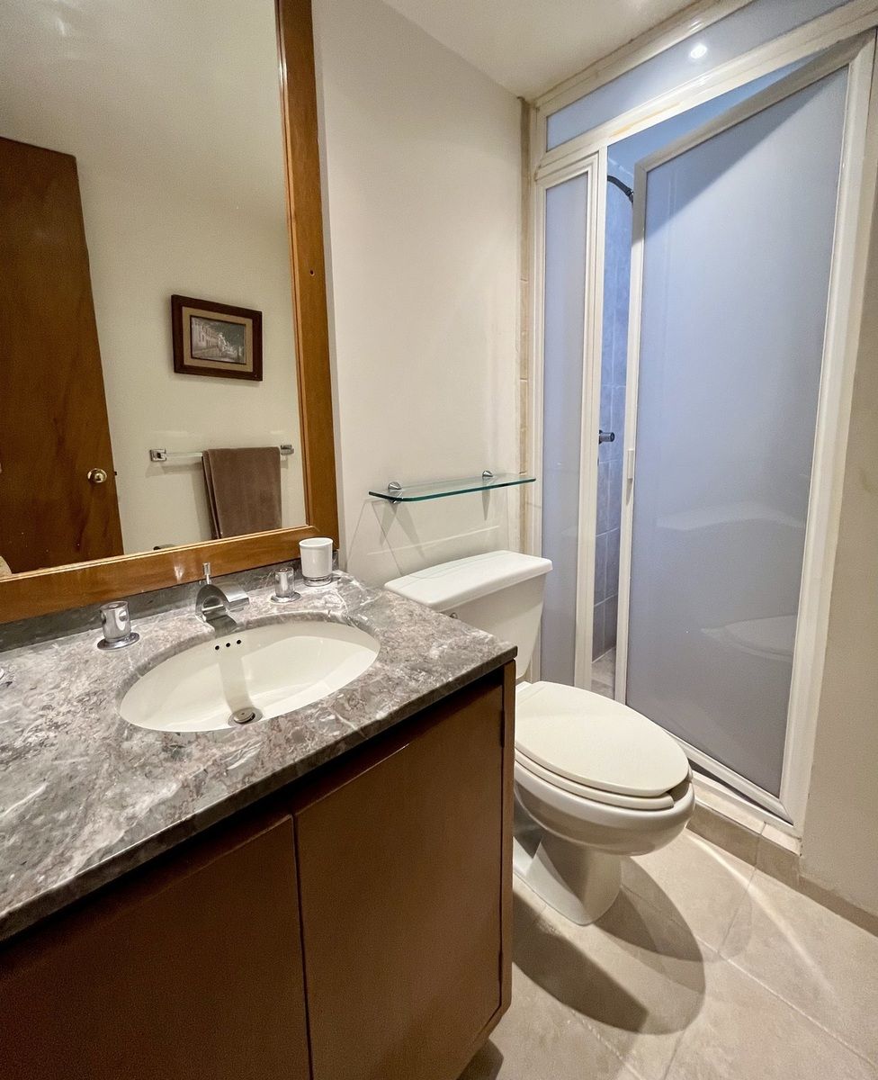 Comodo departamento ubicado en un primer piso totalmente amueblado, consta de una muy espaciosa estancia, sala comedor y área de bar con salida a una amplia terraza, cocina integral con antecomedor, family room, medio baño de visitas, 3 recamaras, la principal con vestidor, baño y salida a la terraza, las otras 2 recamaras con baño cada una y closets de piso a techo, cuarto de servicio y área de lavado integrados al departamento.