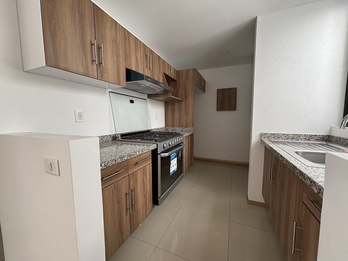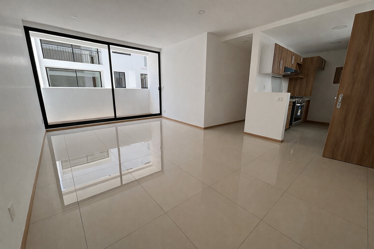 Área Social: Estancia-comedor amplia con excelente iluminación natural con salida a terraza y cocina integral de estilo moderno con área de lavado.