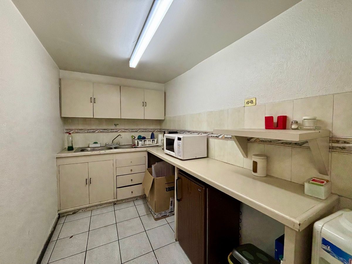 Es una casa , muy iluminada, que esta acondicionada como oficina, que puede ser remodelada al gusto del inquilino o comprador , sin columnas o muros divisorios puede ser un área totalmente abierta, actualmente en la PB consta de recepción, sala de juntas, 1 cubículo o despacho y un área de trabajo para 20 personas cómodamente instalados, 3 medios baños , una cocineta y un almacén para archivos.