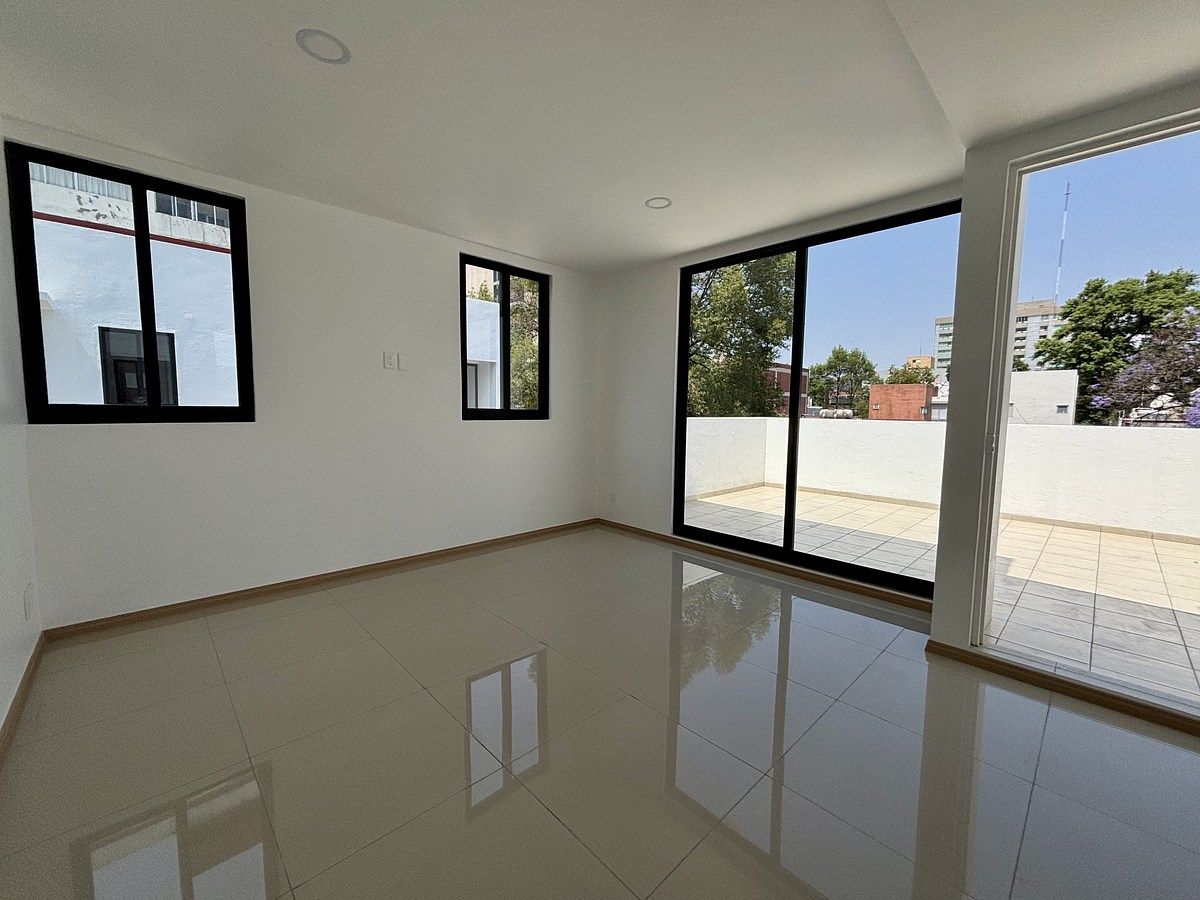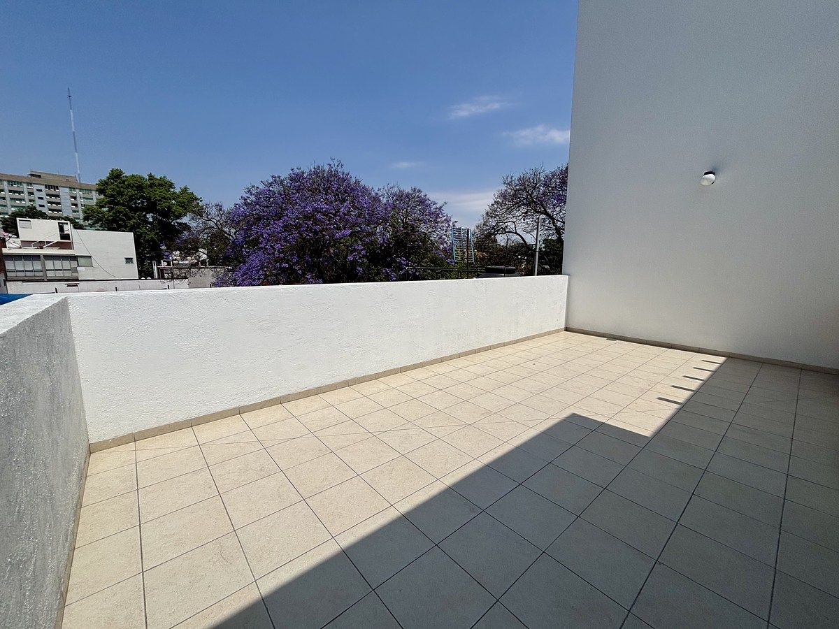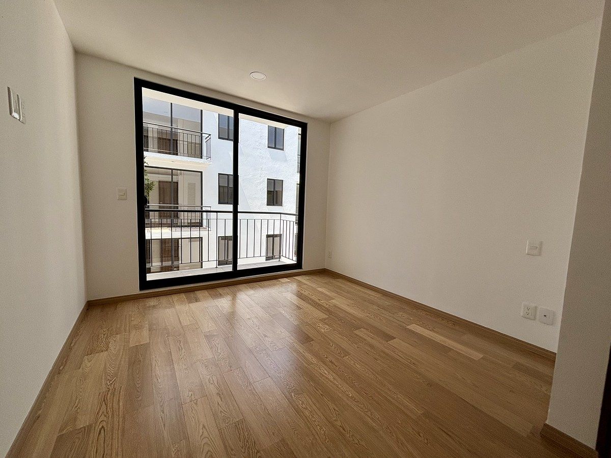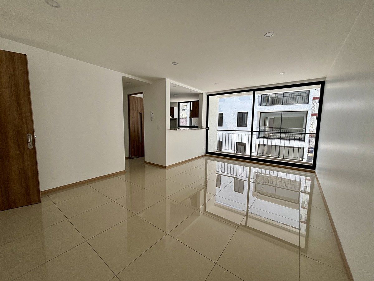 Área Social: Estancia-comedor amplia con excelente iluminación natural con salida a balcón y cocina integral de estilo moderno con área de lavado y un baño completo (incluye cancel de vidrio templado).